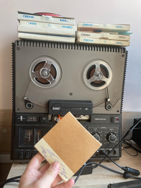 …Потім ця бобіна супроводжує нас у незліченних переїздах із квартири на квартиру. Потім бобінні магнітофони виходять із ужитку. Потім стає взагалі нереально прослухати її, вона залишається як артефакт давно минулої епохи, десь там углибині тоненької і вузької стрічки мешкають наші із батьком голоси.